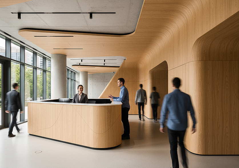 Surface wraps for walls, cabinetry and joinery in commercial interiors