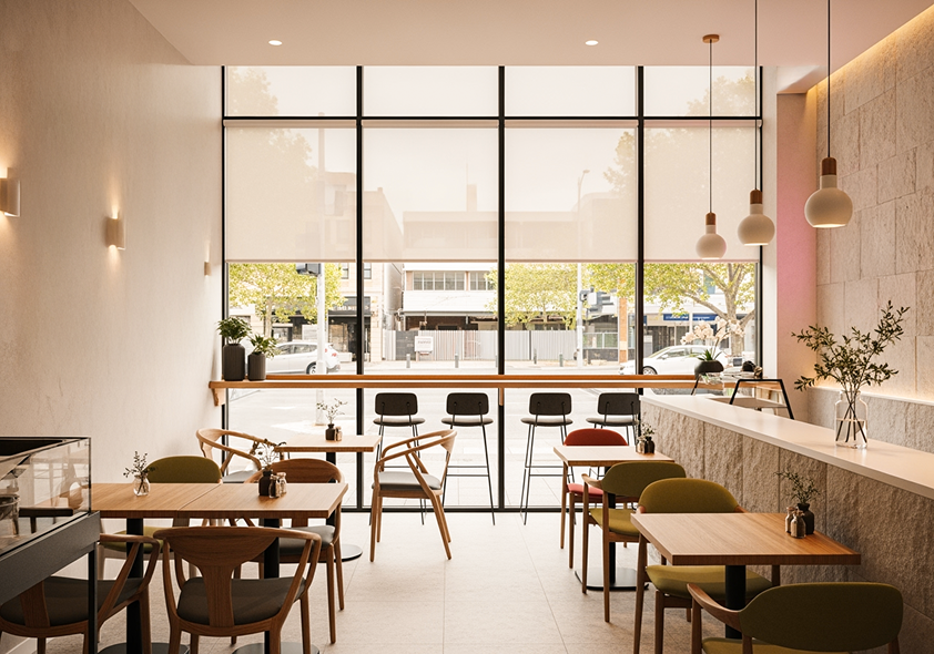 High-performance solar blinds for offices, cafes and customer areas